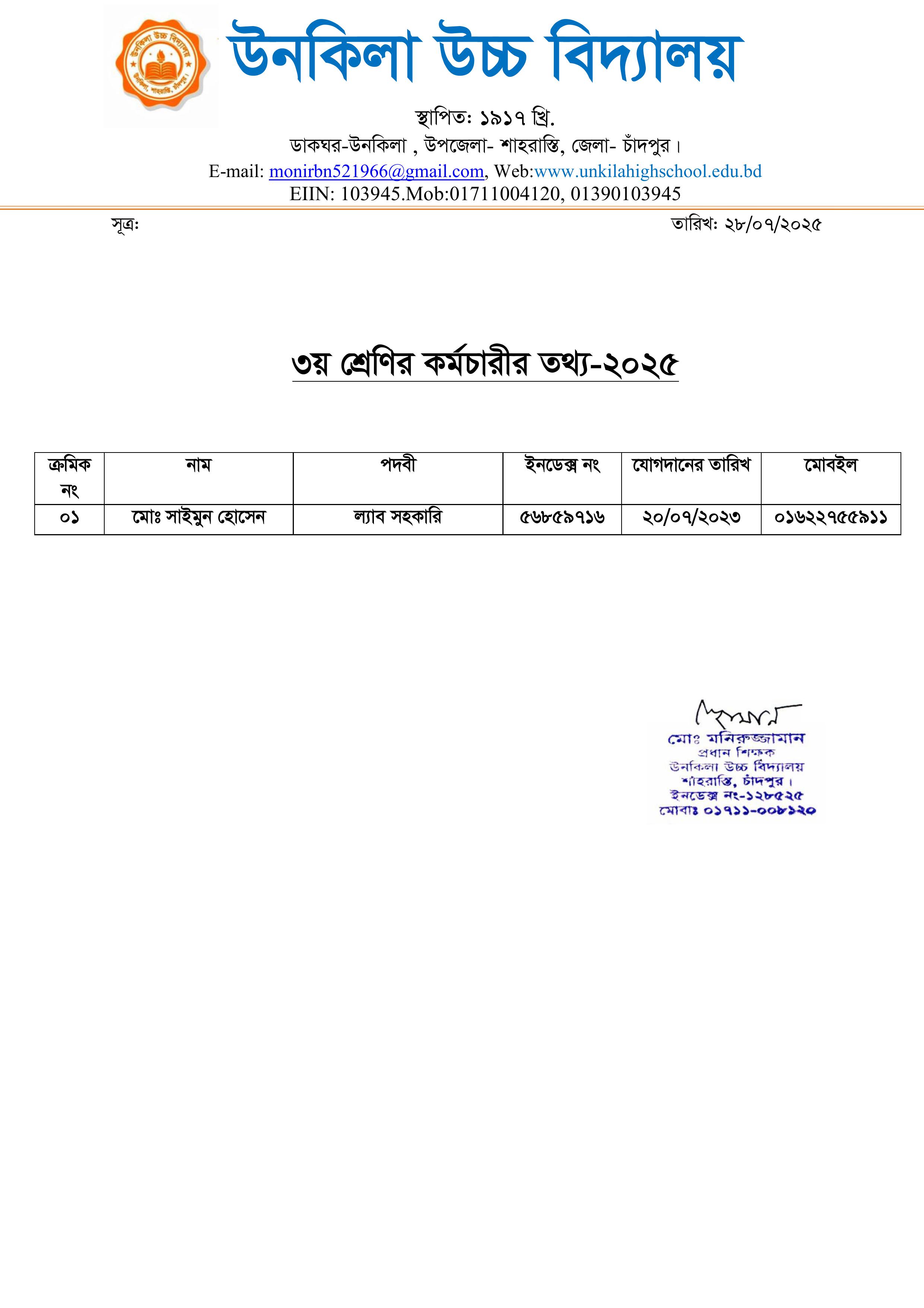 কর্মচারী – ৩য় শ্রেণি