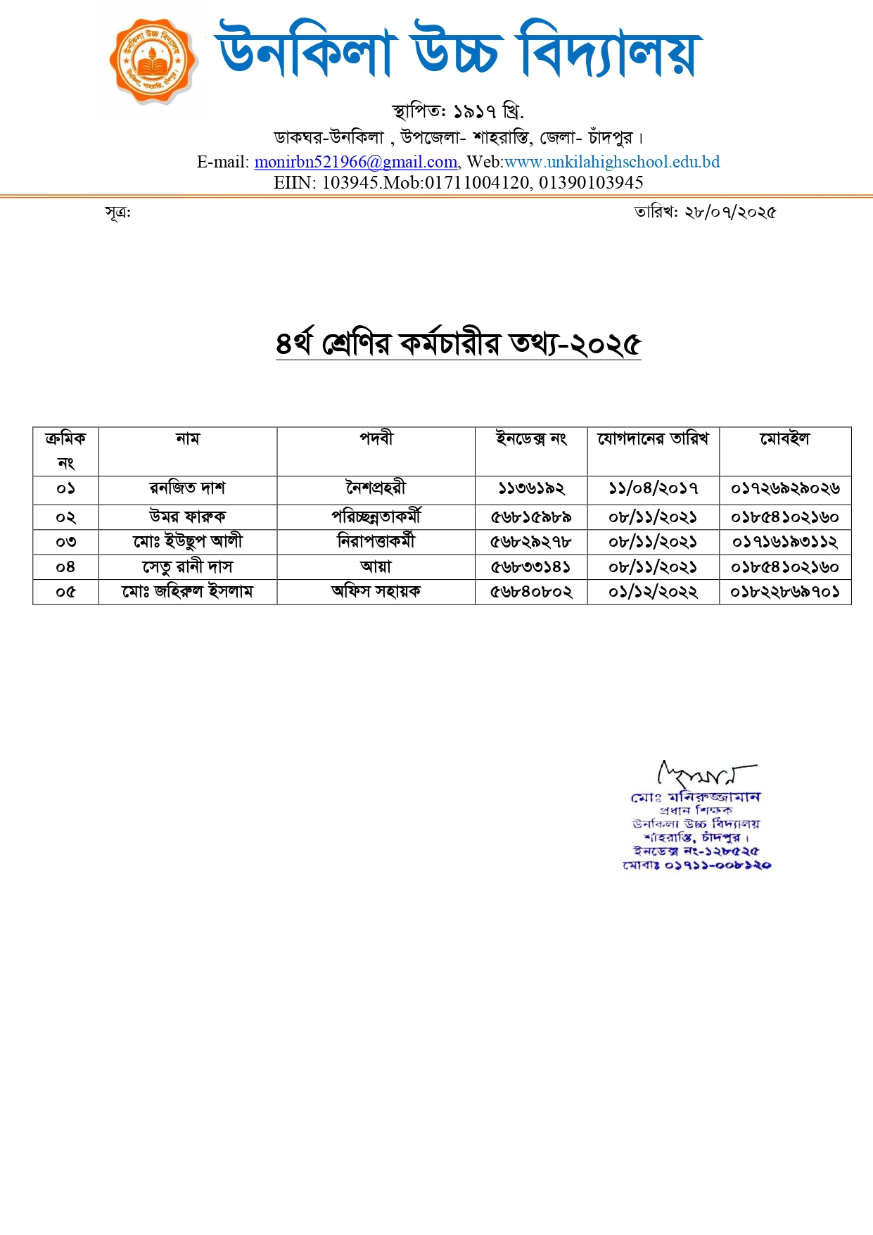 কর্মচারী – ৪র্থ শ্রেণি