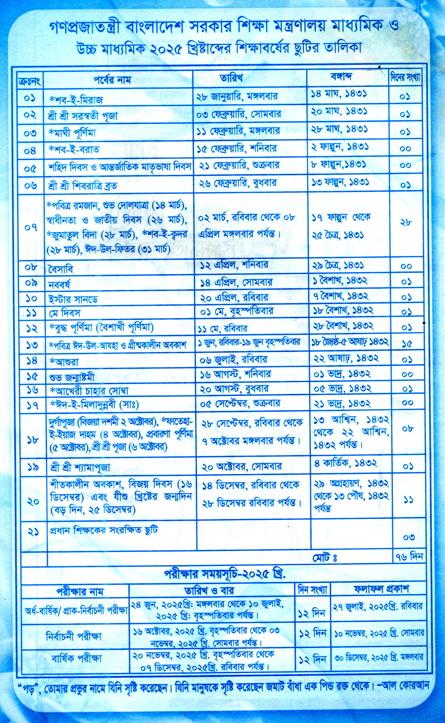 পরীক্ষার রুটিন